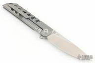 This Integral Framelock Flipper by TwoSun knives features a satin finished blade with single thumbstud and flipper. The handle has a bead blasted integral titanium frame with a matching tip up clip, has stainless steel lockface insert. Rides on bearings, nice detent, lockup and blade seating. Comes with original box. Excellent condition.