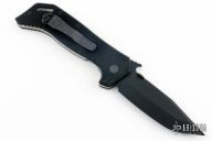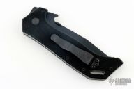 This ETAK-B features a black blade with thumbdisc, notched thumbrest and wave features. The handle has black G-10 scales. Stainless steel clip, tip up carry. Includes original box and papers. Excellent condition. #0255 and dated 2014