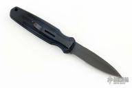 This Mini Covert Auto by Gerber features a black spear-point partially serrated blade a notched thumbrest. Has a black aluminum handle with a and safety. Black stainless steel clip, tip down clip. Excellent condition. Comes with original box and papers.