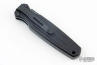 This Mini Covert Auto by Gerber features a black spear-point blade a notched thumbrest. Has a black aluminum handle with a and safety. Black stainless steel clip, tip down clip. Excellent condition. Comes with original box and papers.