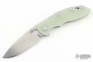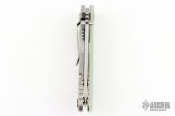 This XM-18 by Rick Hinderer Knives features a 3.5" stonewash finish blade, notched thumbrest and dual thumbstuds. The handle has a translucent green G-10 scale, and stonewashed titanium handle and satin finished hardware, filler tab, and titanium clip. Clip can be mounted for tip up or down carry. Nice lockup, seating, and detent. Comes with original box and extra hardware. Excellent Condition.