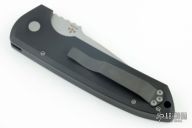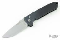This LG301 Rockeye has a stonewashed blade with a notched thumbrest. The handle has a black aluminum frame with a matching steel tip up pocket clip and a bead blasted push button. Typical flawless Pro-tech mechanics and blade seating. New from maker!