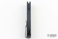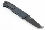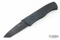This Emerson/Pro-Tech CQC7 automatic has a chisel ground black DLC tanto blade and a black aluminum textured handle with a black push button. Black stainless steel clip, tip up carry. Coil spring. Comes with original box and papers. New from maker!