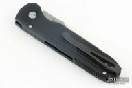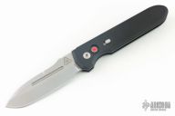 This Invictus by Pro-Tech is a Prometheus Design Werx design, it features a tumbled blade with satin finished flats and a notched thumbrest.  The handle has a black aluminum frame with a black stainless steel tip up clip, lanyard hole at the butt. Push button with red G-10 inlay and a safety.  New from Maker!