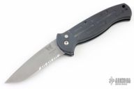 This AFO Automatic from Benchmade features a bead blasted drop point blade with swedge and partial serrations. The handle has black aluminum with a lanyard hole in pommel, tip up clip. No clip. Comes with zipper case. Has some scuffs and scratches, great condition otherwise.