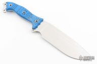 This Beating Heart by Busse features a satin finished blade with .209" blade thickness and 2.246" blade depth, full tang construction. The handle has black/blue G-10 scales. New from maker!