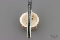 This beautiful lockback by Jim and Joyce Minnick features a Damascus blade with a file worked blade spine. The handle has blued steel bolsters with integral liners, gold inlaid engraving on bolsters, pearl scales, file worked and blued steel backspacer. Has nice action and lockup. Excellent condition.