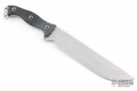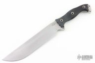 This Nano Fusion Camp Mistress by Busse Combat Knife Company features a stonewashed blade with .211" blade stock and 1.789" blade depth. The handle has black G-10 scales over full tang construction. Exposed tang pommel with lanyard hole. New from maker.