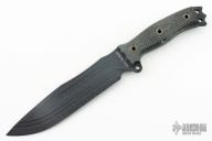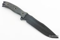 This Hell Razor 2 from Busse features a black coated blade with fullers and black canvas micarta scales, .216" blade thickness and 1.769" blade depth, full tang construction. Has large fullers on blade and corrugated bevel technology. New from maker!