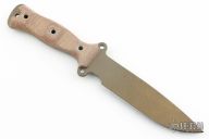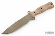 This Nano Gemini by Busse Combat Knife Company features a drop point bronze coated blade with .190" blade stock and 1.461" blade depth. The handle has natural canvas micarta scales over full tang construction. Exposed tang pommel with lanyard hole. New from maker.