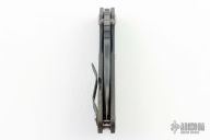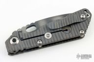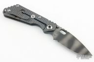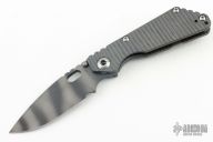 This SNG Fatty framelock folder by Mick Strider features a drop point tiger stripe blade and a flamed titanium frame and tip up titanium clip. Includes Hinderer "Lock Bar Stabilizer" for maximum reverse lock retention. Nice detent, lockup and blade seating. New condition.