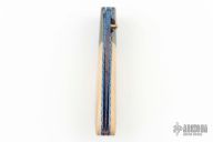 Before he became a full-time knifemaker, he was a headmaster of a school for students with learning disabilities. He seriously committed to making his first knife after his 16 year old son passed away in 1994. He became a full-time maker in 1996 and is a Knife Guild of South Africa member. Theuns never makes the same knife twice. Some knives may use the same materials or have a shape that is somewhat similar, but what separates a Theuns Prinsloo knife is in the details. I heard that when Michelangelo was painting the Sistine Chapel there were places he painted that would never be seen by human eyes, but Michelangelo painted them anyway because God would see them. The next time you pick up one of Theuns Prinsloo’s folding knives, open it. Look inside the recess where the blade seats and prepare to be amazed. Theuns painstakingly makes an etching on the inside each of the backspacers that usually depicts an African bushman scene with the backdrop being the mountain that is visible from his backyard.