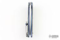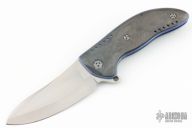 This Jekyll flipper from Allen Elishewitz features an upswept compound grind blade with flipper tab. The handle has marble carbon fiber scales, textured and anodized titanium liners, titanium tip up clip, and titanium barrel spacers. Nice detent, lockup and blade seating. Comes with a velcro case. Has some light scuffs, excellent condition otherwise.
