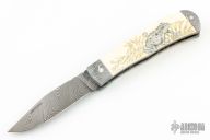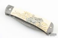 Home Products Damascus and Mammoth Ivory Slipjoint w/ Scimshaw