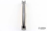 This Single Blade Trapper by Chuck Hawes features a Damascus blade with nail nick and fileworked spine. The handle has Damascus bolsters with integral liners, mammoth ivory inlays with scrimshaw by "Tina" and dated '98, Damascus spring. Has half-stop. Has a couple light scuffs and some light patina, otherwise excellent condition.
