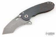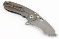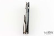 This S-96 framelock flipper from Direware Knives features a compound grind recurve tanto blade. Smooth flipping action that requires no wrist movement with a strong lock up, nice detent and blade seating. The handle has a carbon fiber scale, tumble and anodize finished frame with matching pocket clip positioned for tip up carry. Satin finished spacers. Comes with a zipper case, excellent condition.