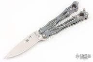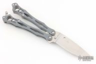 Spyderco's original SmallFly was a uniquely different "spin" on the balisong, or Filipino butterfly knife. Now this remarkable design is back with this special limited featuring full-flat-ground, drop-point blade profile crafted from CPM-Cru-Wear. Like the original, it features skeletonized twin handles with full stainless steel liners and peel-ply-textured Gray G-10 scales. The Round Holes at the butt end of both handles reflect Spyderco's iconic trademark and help achieve optimal balance for high-speed manipulation. A spring-loaded latch attached to the "free" handle secures the handles together in the closed position, while the removable wire pocket clip may be attached to either side of both handles as both a carry option and tactile index.