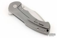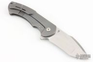 This Fallout 2 from Reate Knives is a Rick Barrett design, it features a stonewash finished CTS-204p blade. The handle scales are 3D sculpted and tumbled titanium. The pocket clip is positioned for tip up carry. Knife flips incredibly well on ceramic caged bearings. Great lockup, ceramic detent, and blade centering. Knife is in Excellent condition. Comes with nylon zippered case.