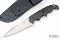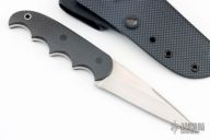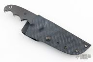 This knife by Greg Lightfoot features a hand rub satin finished wharncliffe blade with notched thumbrest, .143" blade stock and 1.142" blade depth, full tang construction. The handle has carbon fiber scales with micarta pins, lanyard hole at the butt. Comes with a kydex sheath. Has a few light scratches, otherwise excellent condition.
