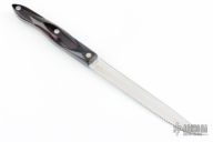 This Petite Carver by Cutco features a mirror polished fully serrated blade with .065" blade stock and .739" blade depth, full tang construction with classic brown (looks black) scales. Excellent condition.