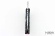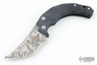 This Bastinelli friction folder features a D2 etched blade with sculpted G10 handles. Red liners and black G10 backspacer. Excellent condition.
