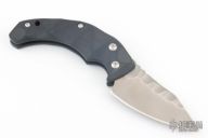 This Bastinelli friction folder features a D2 bead blast blade with sculpted G10 handles. Red liners and black G10 backspacer. Excellent condition.