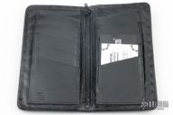 This wallet by Starlingear features stitched leather construction with 10 card slots, two cash slips and zipper. Wallet shows some wear, excellent condition otherwise.