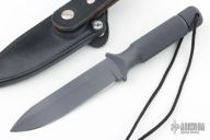 "Designed to incorporate the two basic criteria required in knives destined for hard field usage, these spear-points have plenty of blade weight and good strong points. This design has been used by soldiers all over the world who have found them to be extremely good weapons as well as rugged dependable tools. The 5.5” bladed Shadow IV is a good everyday carry knife and the pancake sheath rides high and snug." This one has a spear point blade with false top edge, .202" blade stock and 1.149" blade depth. Excellent condition. Comes with black leather sheath.  Comes with a replacement box and COA, it says original manufacture date was between 1990-2008, reissue date of June 4, 2020. #144
