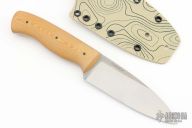 This Wolverine by Christopher (Big Chris) Berry features a satin finished blade with .120" blade stock and 1.577" blade depth, full tang construction. The handle bone linen micarta scales with pinned construction. Comes with a kydex sheath and COA. Excellent condition.