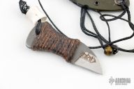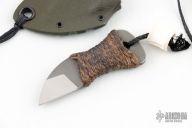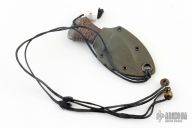 This Anchovy by Angler Knives features a satin finsihed saber grind wharncliffe blade with a hidden tang construction.  .130" Blade Stock.  .694" Blade Depth.  The handle features epoxied jute, Kevlar lanyard with bead.  Includes a neck kydex sheath and COA.  Light sheathing marks are visible on the blade otherwise the knife is in excellent condition.