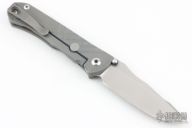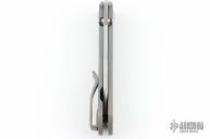This Umnumzaan Framelock Folder by Chris Reeve Knives has a stonewashed drop point blade with dual thumb studs and notched thumbrest. Handle is bead blasted titanium with titanium barrel spacer, titanium tip up deep carry Lynch clip, and lanyard hole. Nice detent, lockup and blade seating. Comes with tools, lube, and original clip. Has some scuffs and scratches, otherwise good condition.