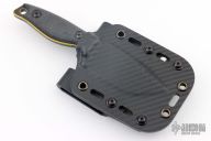 The blades are made with CPM 3V steel professionally heat treated. The finish is a distressed black and yellow Cerakote finish (TOPS Knives colors). The handles are Black G10 with some tread for added grip. The sheaths are carbon fiber pattern Kydex. They come with a couple of closed j-hook clips, but have eyelets and slots so that just about any other attachment of your choice could be used. This makes carry options that will work for just about anywhere or any way you want to take this with you.
