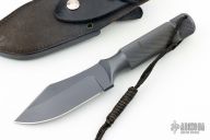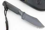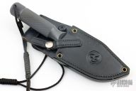 This Ubejane Skinner from Chris Reeve features a non reflective black finish with a clip point A2 blade with a false top edge and notched thumbrest, .200" blade stock and 1.737" blade depth, integral construction. The handle is knurled for a solid grip and has a removable butt cap with lanyard, has butt cap and storage area inside the handle. Comes with original black leather sheath. Has a couple light scuffs, excellent condition otherwise.