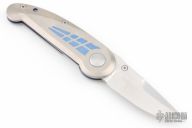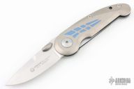 This Superliner by Boker features a spear point blade with false top edge and thumbstud. The handle has titanium scales, stainless steel liner and backspacer. Scuffs and scratches are visible on the handle and blade otherwise the knife is in good condition.