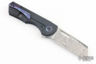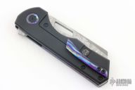 This Production Yeager by Brian Brown features a wharncliffe style Damasteel blade. The handle has a black PVD titanium frame with timascus pivot collars, tip up clip and backspacer. Comes with original box, collars, clip, COA and zippered case. Timascus clip. Excellent condition.