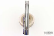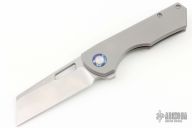 This Production Yeager by Brian Brown features a wharncliffe style blade with belt satin finish. The handle has a bead blast finished titanium frame with Timascus pivot collars, Timascus tip up clip and backspacer. Comes with a zippered case and card. Has a couple light scuffs, otherwise excellent condition.