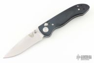 The Foray Axis lock from Benchmade Knives features a drop point blade with dual thumbstuds. The handle is composed of black G10 scales over stainless steel liners. This reversible tip up pocket clip is stainless steel. Includes original box, drawstring pouch and papers. Excellent condition.