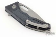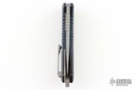 This Medusa Manual by Heretic Knives features a battleworn tanto blade with false top edge, notched thumbrest and flipper. The handle has a black aluminum frame with checkered push button, battleworn backspacer and a tip up stainless steel clip with ceramic ball. Comes with original box and drawstring bag. Has some scuffs and scratches, great condition otherwise. #00093
