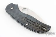 This Sage by Spyderco Knives features a satin finished blade with thumb hole. Carbon fiber pattern G-10 scales, stainless steel liners. Comes with original box and papers. Excellent condition.