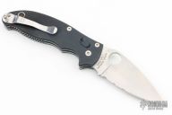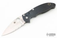 This Manix 2 Axis Lock Folder has a bead blasted blade with thumb hole and notched thumb ramp and partial serrations. Scales are black G-10 over stainless steel partially jimped liners, stainless steel tip up clip - RH/LH reversible, and stainless steel lanyard tube pin. Has a couple light scuffs, otherwise Excellent condition. Includes original box and papers.