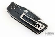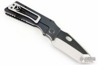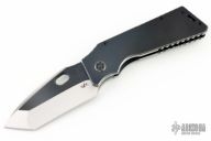 The Fat Daddy by Medford Knife and Tool features a two-tone tanto blade with thumbhole and notched thumbrest. The blade was reground by "REK". The handle has a black PVD titanium frame with a polished titanium tip up clip and polished edges of the frame. Comes with original hard case and papers dated March 31, 2021. Excellent condition.