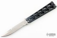 This Model 239S balisong by Benchmade features a tumble polished blade with false top edge. The Zanak handle has black coating and latch. Excellent condition. Comes with original box.