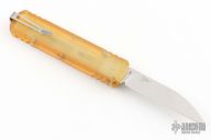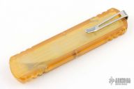 This Zulu Spear by Darriel Caston features a satin finished wharncliffe blade. The handle has an Ultem frame with stainless hardware and clip. Black push button. Comes with original box. Excellent condition.