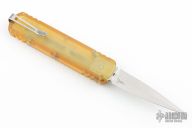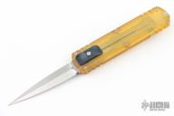This Zulu Spear by Darriel Caston features a satin finished double edged blade. The handle has an Ultem frame with stainless hardware and clip. Black push button. Comes with original box. Excellent condition.