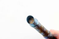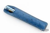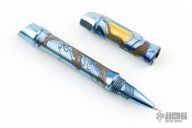 This Bamboo pen by Dmitry Streltsov is made from titanium. Comes with leather sheath and original packaging. The pen can be put together in three different configurations. The first it can just look like a piece of bamboo. Second, you can expose the pen. Third, you can expose the hidden spike end. Has a spring hinging clip. Excellent condition. Comes with original tube and sheath.