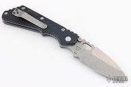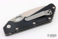 This is a Buck made Strider SNG Tarani has a stonewashed blade with notched thumbrest, thumbhole, partially serrated edge, and textured blade. The handle has textured black  scales, stainless steel liners and reversible tip up carry clip. Notching on thumbrest area and front/rear of handle provide a solid grip. Discontinued. Excellent condition. Comes with original box and papers.