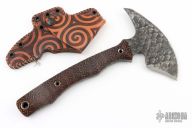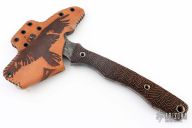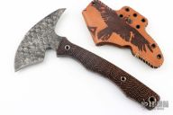 This Custom Storm Crow Spontoon Tomahawk by RMJ Tactical features a "scales" forge finished head with a 2.125" cutting edge, 6.25" from edge to spike, 2.5" spike. Full tang construction .225" haft with engraved micarta covers. Comes with leather sheath and COA dated September 2017.