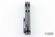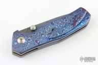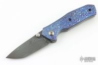 This Hustle by Brian Efros features a San-Mai Damascus blade with dual thumbstuds. The handle has Mokuti scales, orange peel finished titanium liners with mokuti tip up clip with hidden screws and mokuti backspacer. Nice detent, lockup and blade seating. Excellent condition.