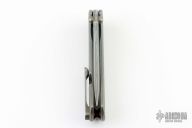 This SBKF by Borka Blades features a San-Mai Damascus XHP Core blade with dual thumbstuds. The handle has a bark finished titanium frame with a matching tip up clip. Nice detent, lockup and blade seating. Comes with zippered case and COA dated 2018. Excellent condition.