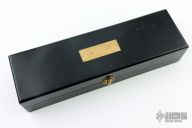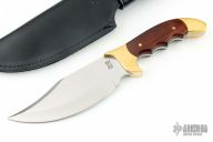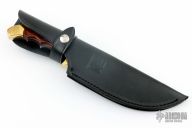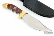 This Model 3000 by G96 Brand features a satin finished blade with false top edge, .177" blade stock and 1.933" blade depth, full tang construction. The handle has brass bolsters, wood scales with brass pins. Comes with original box, papers and black leather sheath. Has some light scratches, otherwise excellent condition.